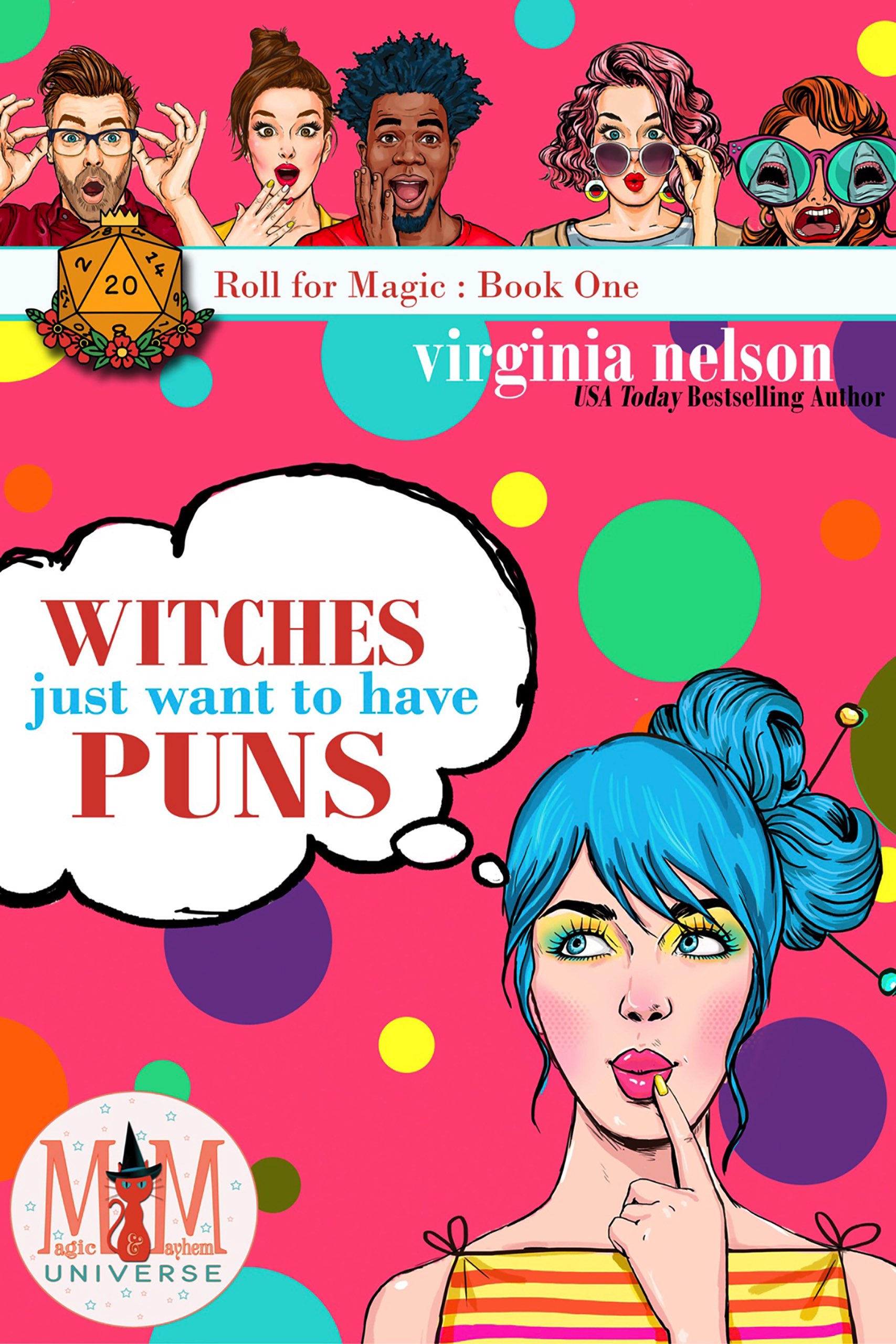 Happy Halloween! To celebrate this fun holiday, here’s a look at USA Today Bestselling Author Virginia Nelson’s fun paranormal tale, “Witches just want to have Puns”, part of the multi-author Magic and Mayhem universe. Enjoy!